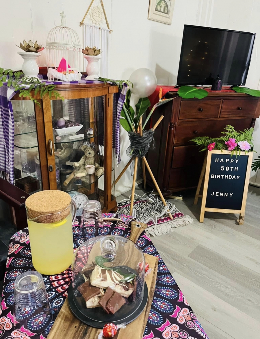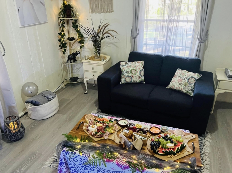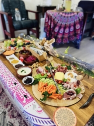 A breath-taking scene full of candles, fairy lights, rugs, cushions, fresh flowers, rose petals, chocolates, champagne, music & a personal message board plus a mouth-watering grazing board full of cold meats, cheeses, dips, crackers, fruit paste, pate, relishes, anti-pesto & fresh seasonal fruit.